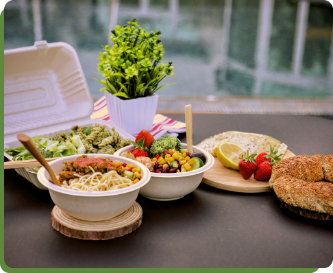 Unsere Zuckerrohrbehälter für Lebensmittel sind wasser- und fettdicht. Sie sind für kalte und heiße Speisen geeignet. Wir verwenden Bambusfasern, um unseren Produkten im Vergleich zu normalen Kunststoff behältern zusätzliche Festigkeit zu verleihen.